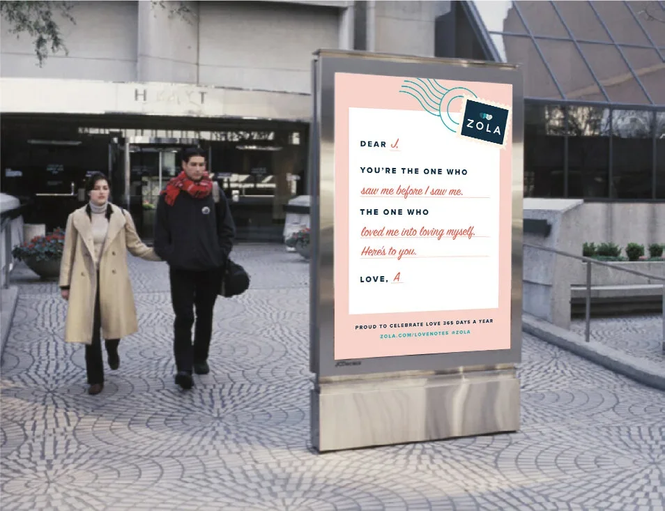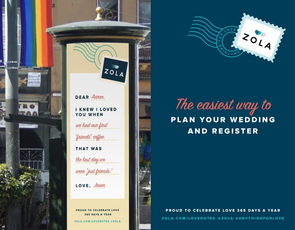 Zola ads featuring same-sex couples were defaced. How could the brand react in a way that literally spread more love around the world?